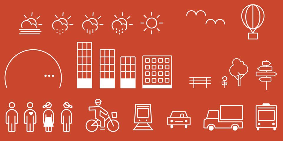 Stockholms stads ikonspråk är inspirerat av vårt typsnitt Stockholm Type och bygger påde geometriska formerna: cirkel, kvadrat och triangel.
